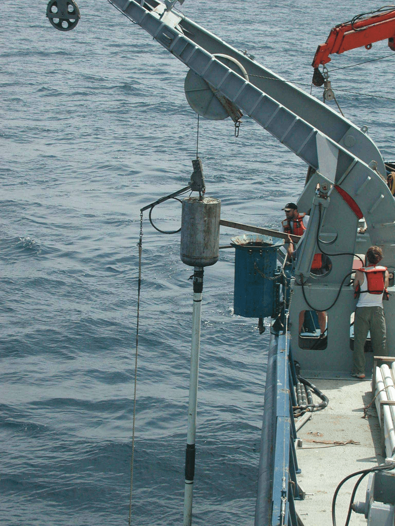 To collect sediment from the ocean, we need to take cores of rock and sediment that will give us a cross-section through Earth’s history. Two common ways in which we collect ocean cores is by coring and by scientific ocean drilling.