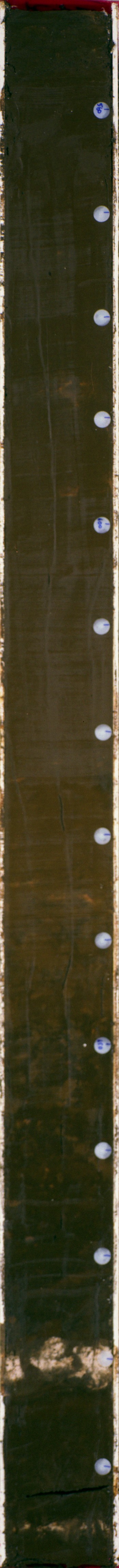 Here is an image of Core C. It is a long core section, so scroll down. The white round pins on the right indicate the depth from the top of the core marked every 10 cm (ex: 600 = 600 cm down from the sediment surface).